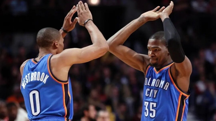 2016年夏,合作八载的杜兰特与威斯布鲁克在俄克拉荷马城分道扬镳。